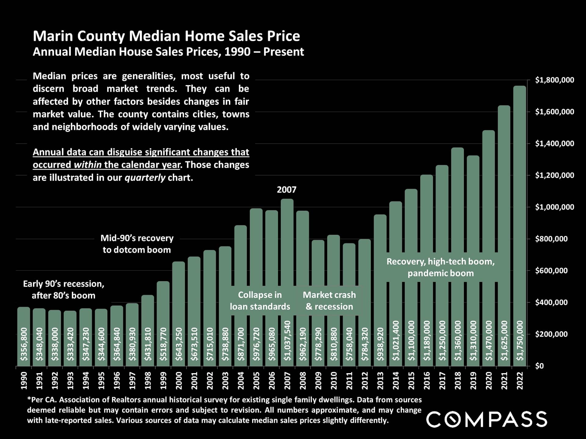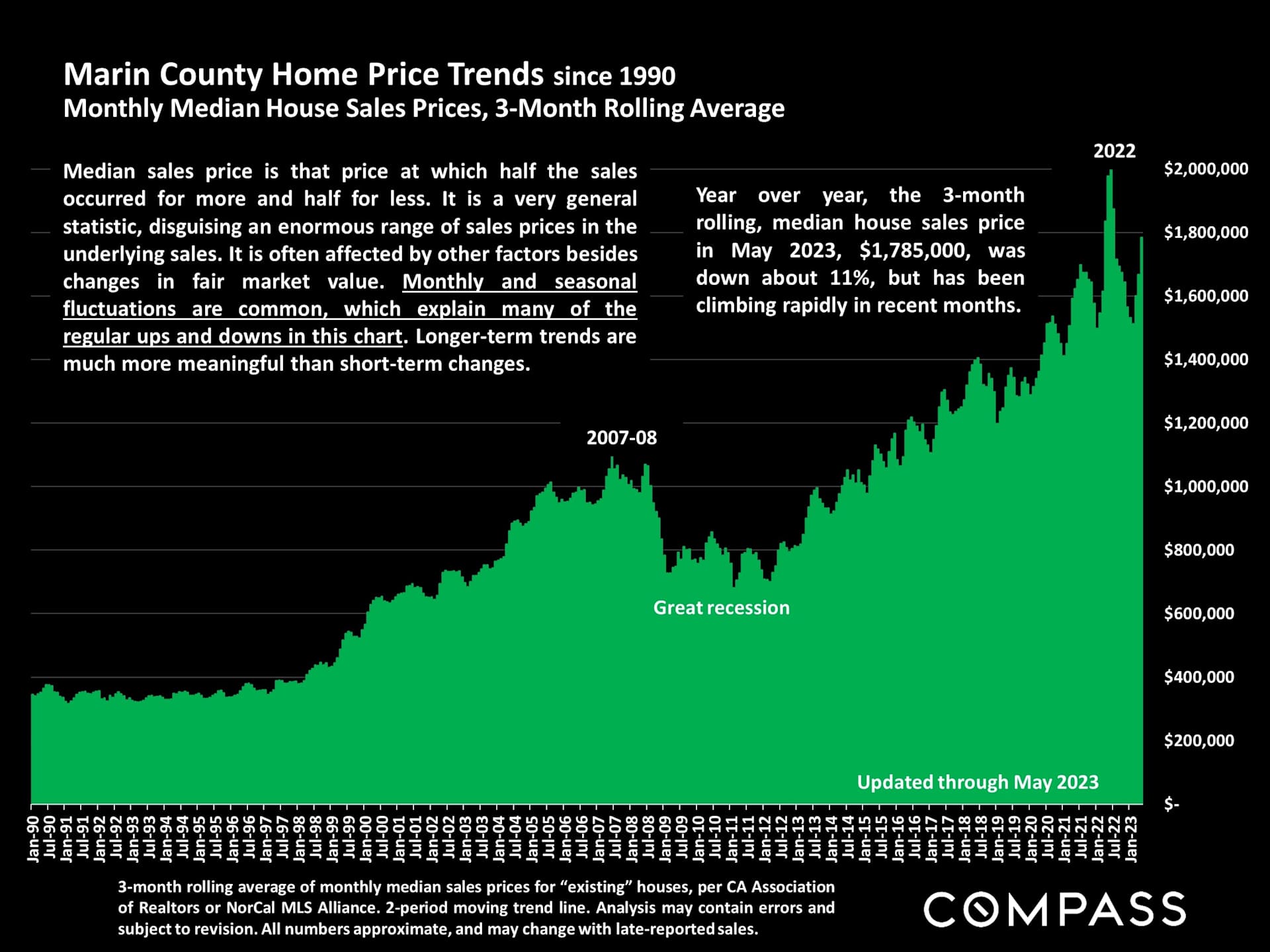 Marin County Median Home Sales Price 1990-Present