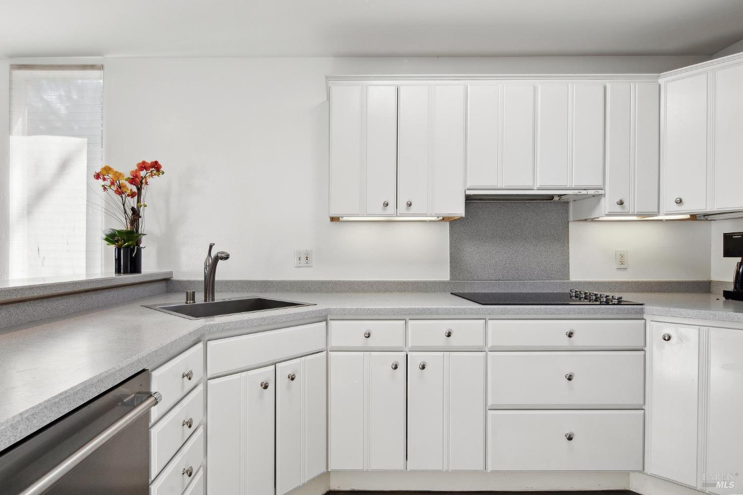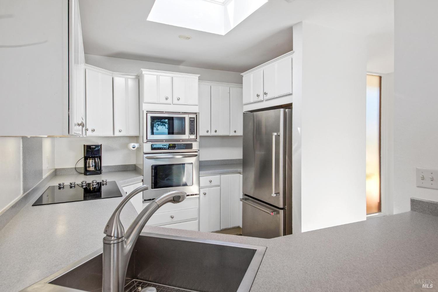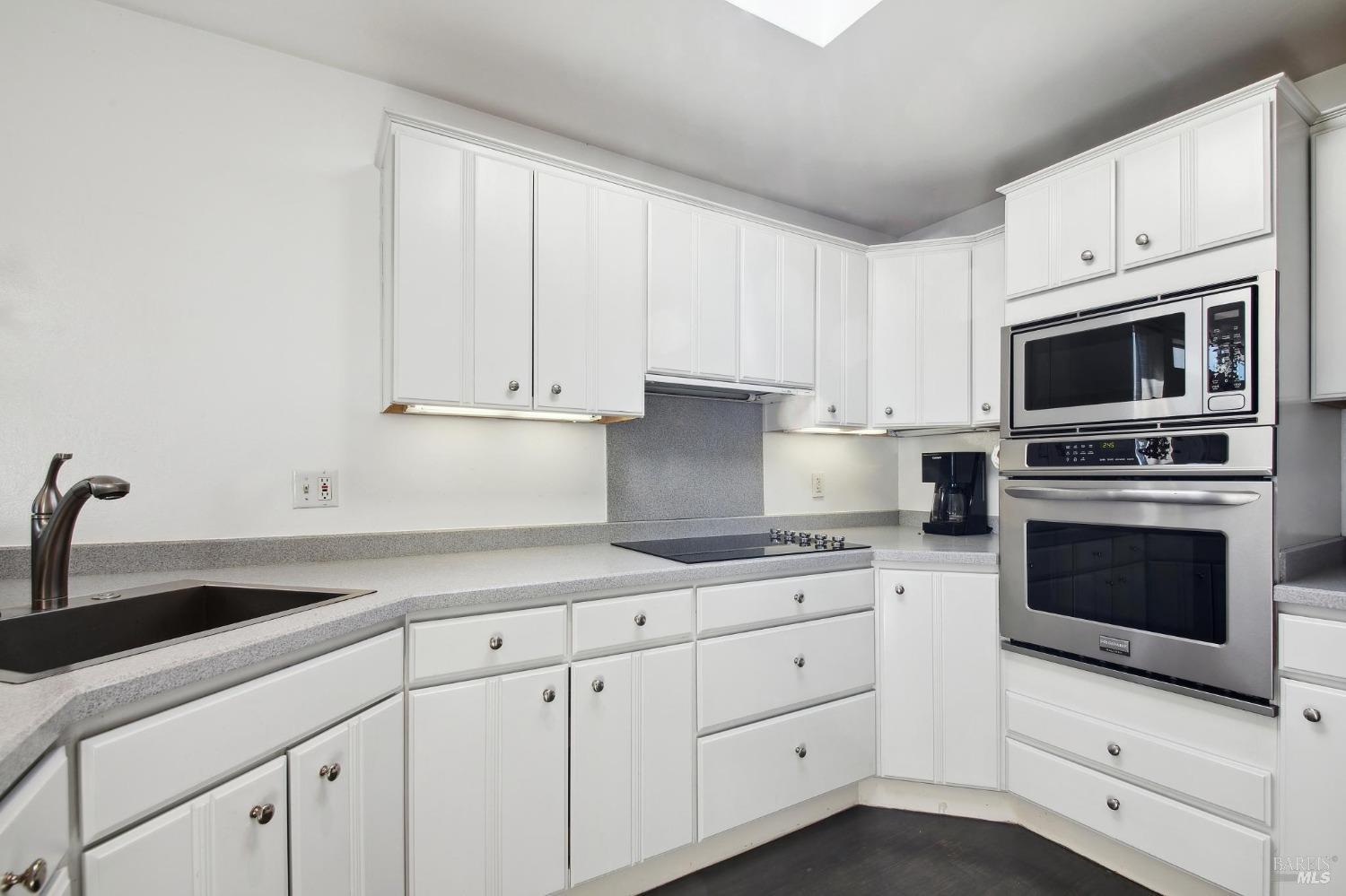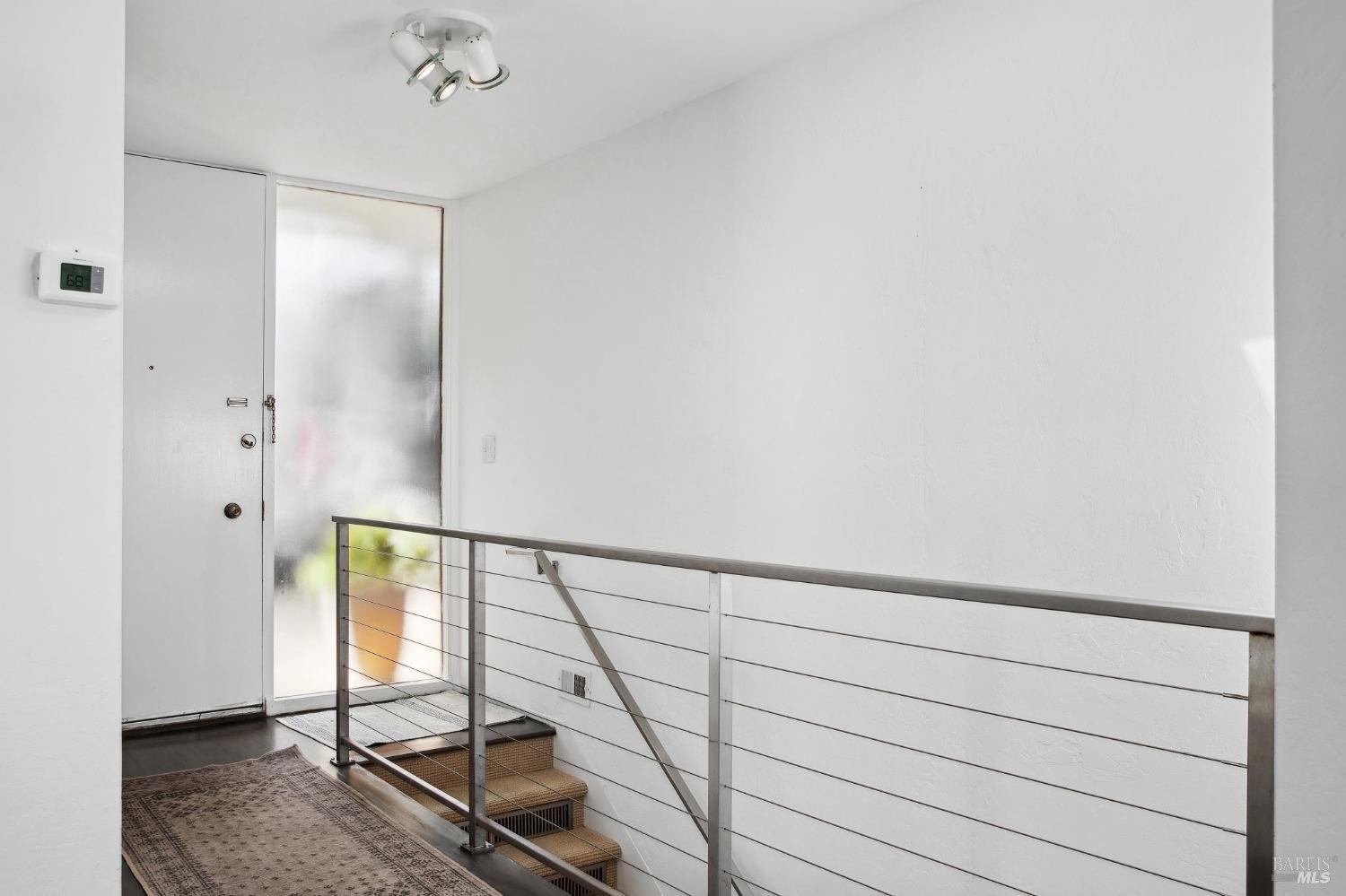 Chic and Secluded Townhouse with Stunning Bay and Angel Island views from the living room, primary, and expansive decks on both levels of this stylishly updated townhouse. The main level offers a no-stairs entry into an open-concept living room and kitchen, featuring a modern wood-burning fireplace and south-east facing natural light. Downstairs, the spacious primary includes a private deck, walk-in closet, and serene views. A second bedroom and full bath complete the lower level. (Another bath can be added.) Recent upgrades include new dual-pane windows and sliding glass doors, modern kitchen appliances, in-unit washer/dryer, on-trend carpeting, updated electrical, and an EV charger. The home also features a newer roof with skylights and a recently replaced furnace. With easy access to the GGNRA trails, an assigned side-by-side 2-car parking deck, only two units in the complex, and HOAs of $400/mo, this property offers all the conveniences and amenities of life in Sausalito and Marin with San Francisco just 10 minutes away. Great short-term rental income, too. (See City of Sausalito 30-day min. restrictions.) Don't miss this one!