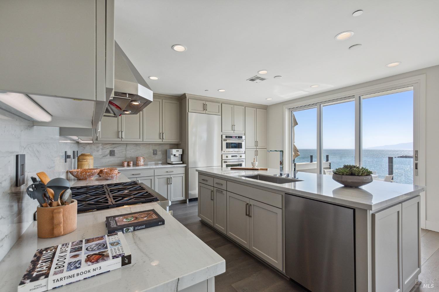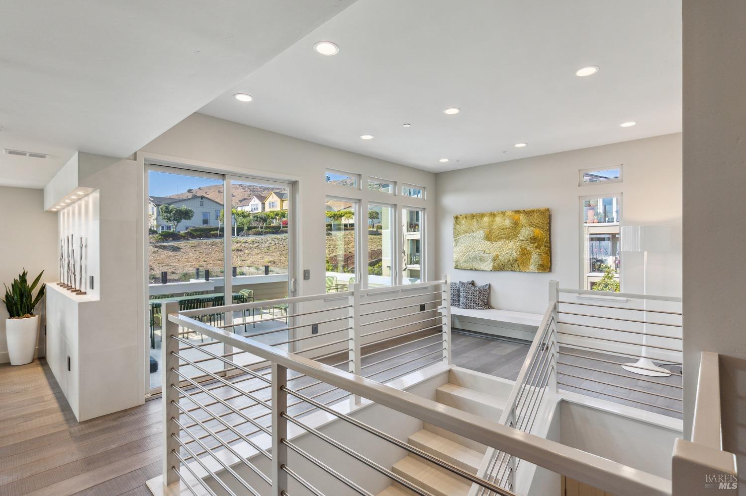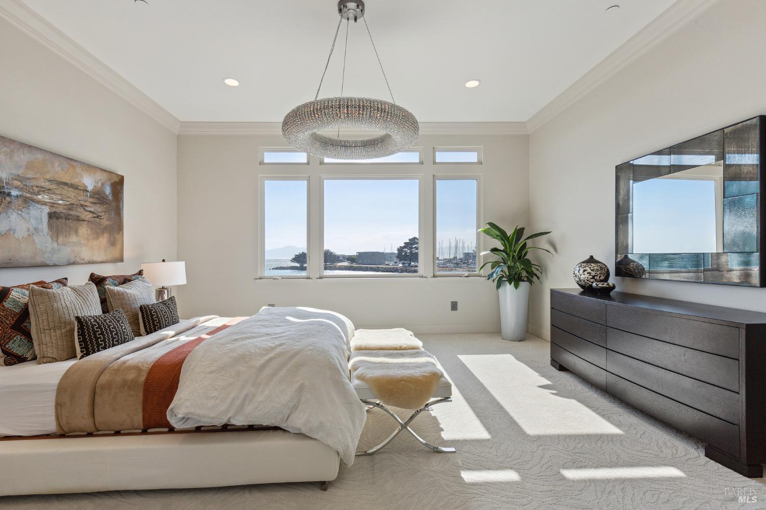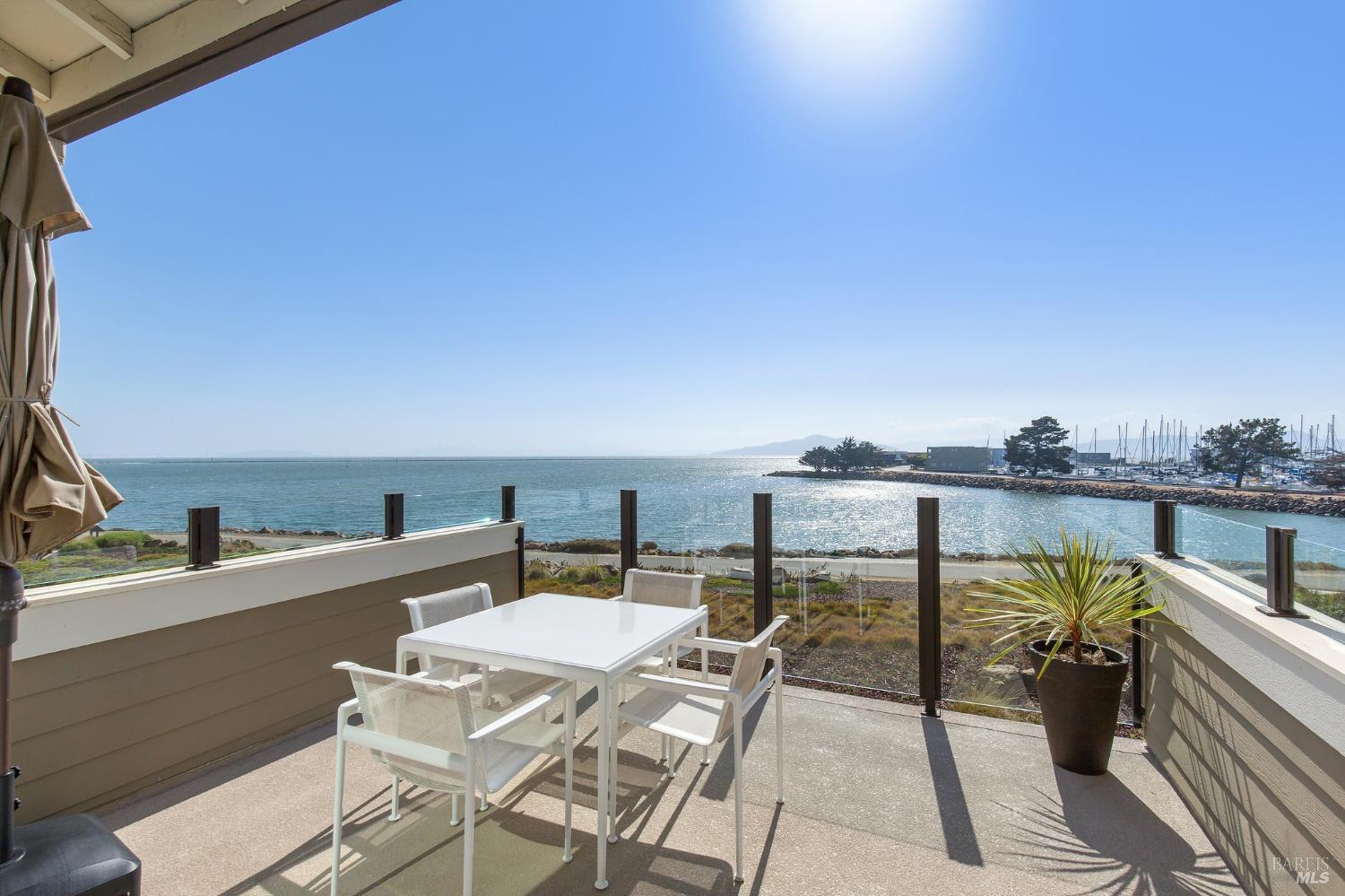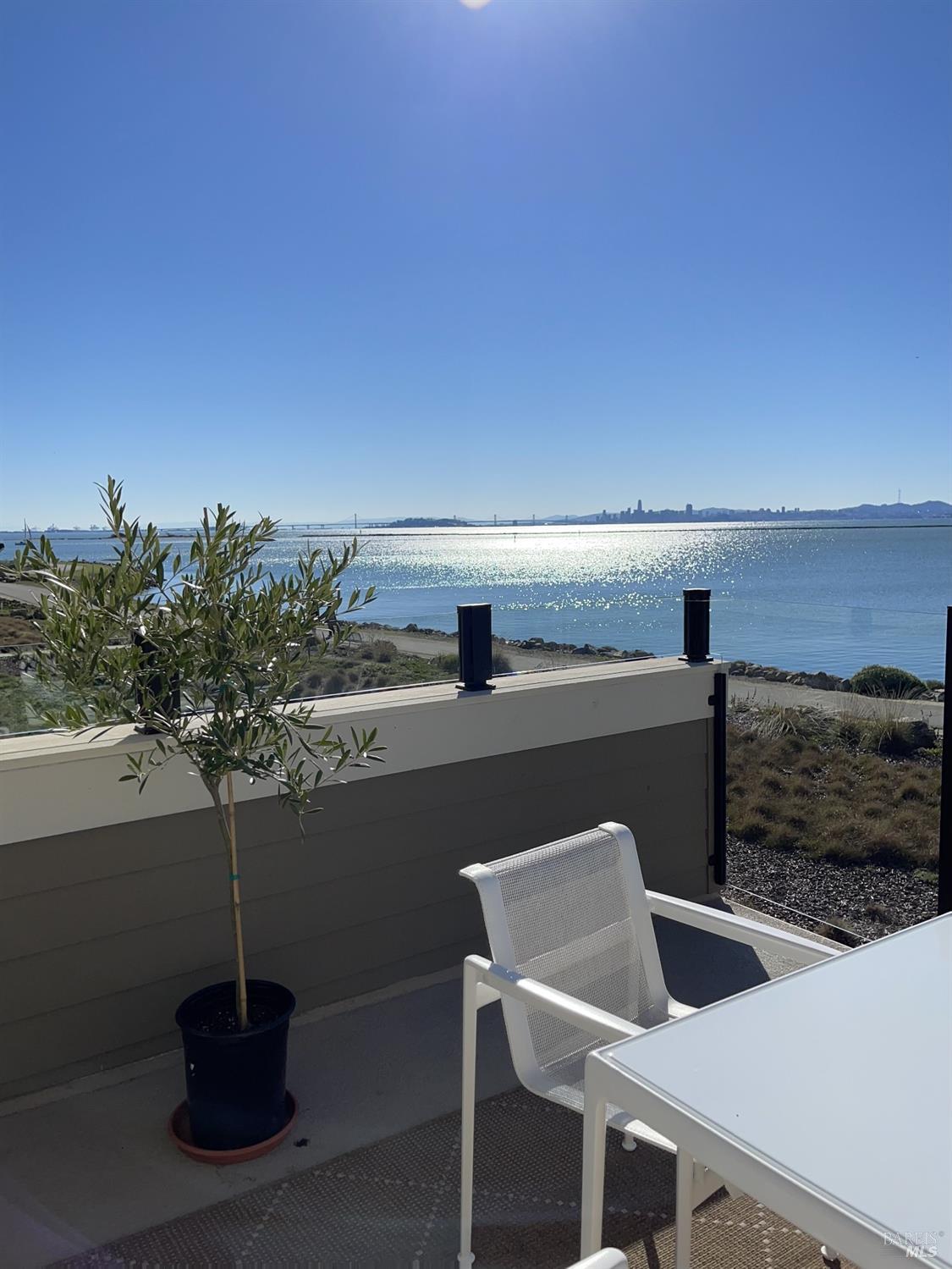 Discover the picturesque village of Point Richmond featuring the finest panoramic views of San Francisco, the Bay Bridge, the Yacht Club, and ever-changing scenery on the Bay in this secluded, serene enclave. The epitome of luxurious waterfront living, this home offers unobstructed front-row views. The upper level, end unit residence, originally the model in 2019, has been completely reimagined showcasing custom built-ins, highest-end appliances and premium designer finishes. With attention to detail evident in every corner, the home exudes a luxurious and modern ambiance. Sunlight bathes the spacious living space. The open floor plan connects the living, dining, and kitchen areas, creating a perfect flow for entertaining and everyday living. The spacious spa-like primary suite off a private hallway also features the water views. Three patios await providing an idyllic setting for relaxation and al fresco dining while enjoying the breathtaking views. The Ferry to the SF Ferry Bldg is ~3 miles away (a 35-minute scenic Ferry ride) and easy access for trips to Marin, Berkeley, the East Bay, or the City. 36 miles of SF Bay Trail pass by the home for recreation. Pt Richmond is a vibrant community w/ restaurants, cafes, parks, a new indoor pickleball center, and much more.