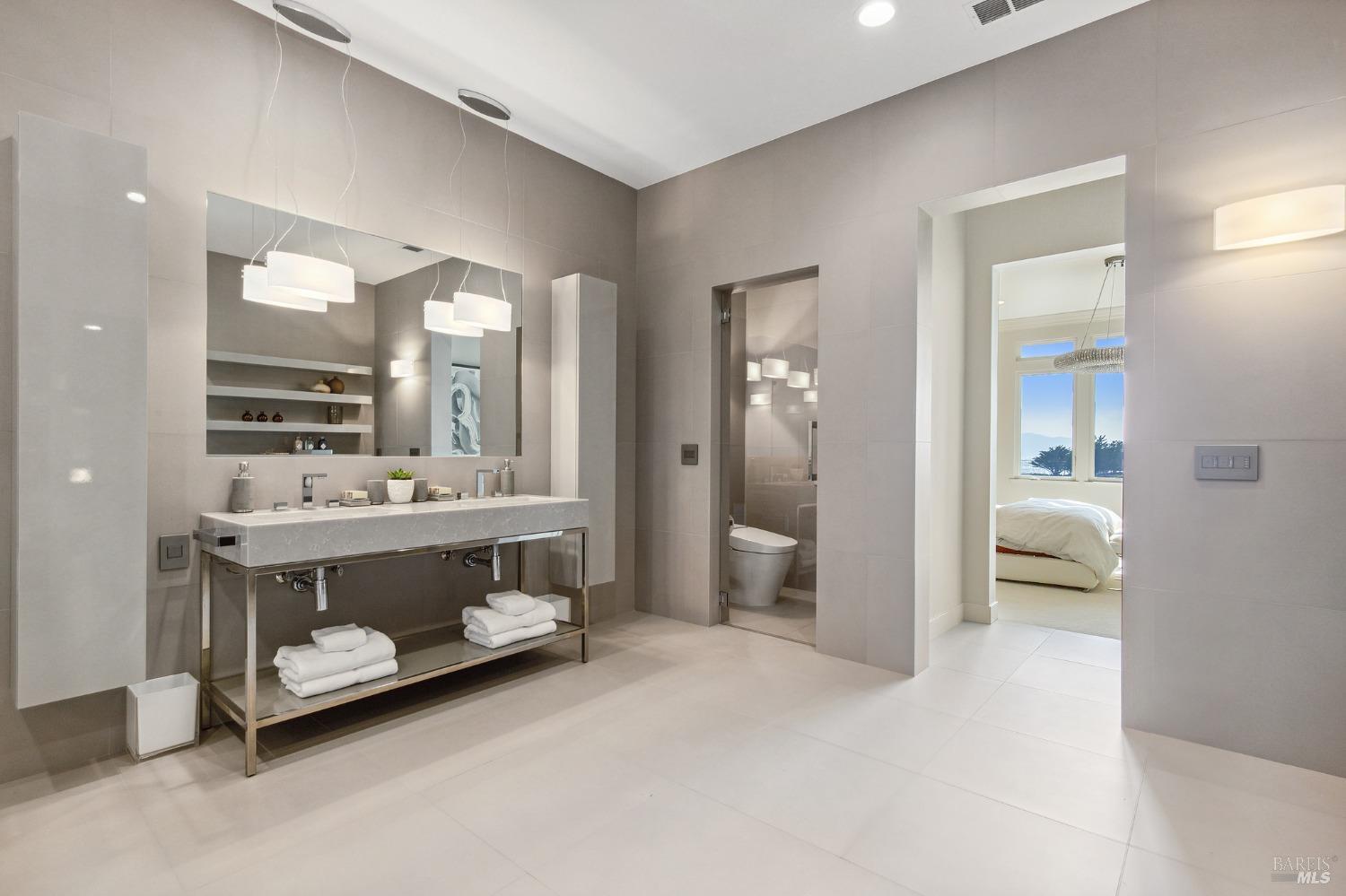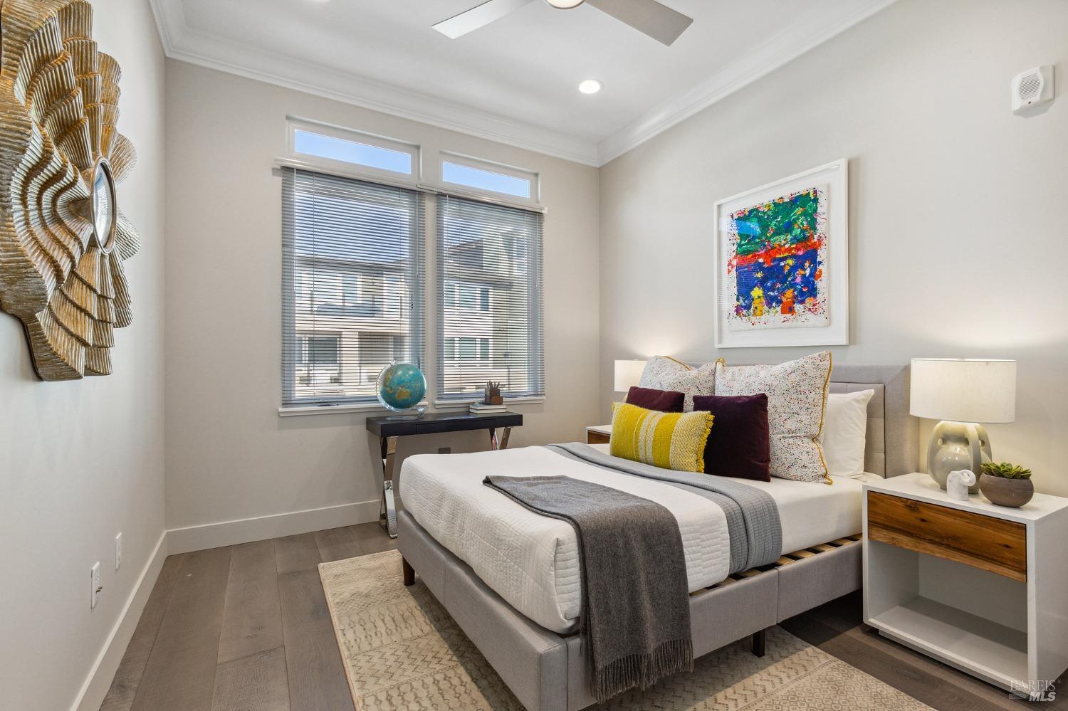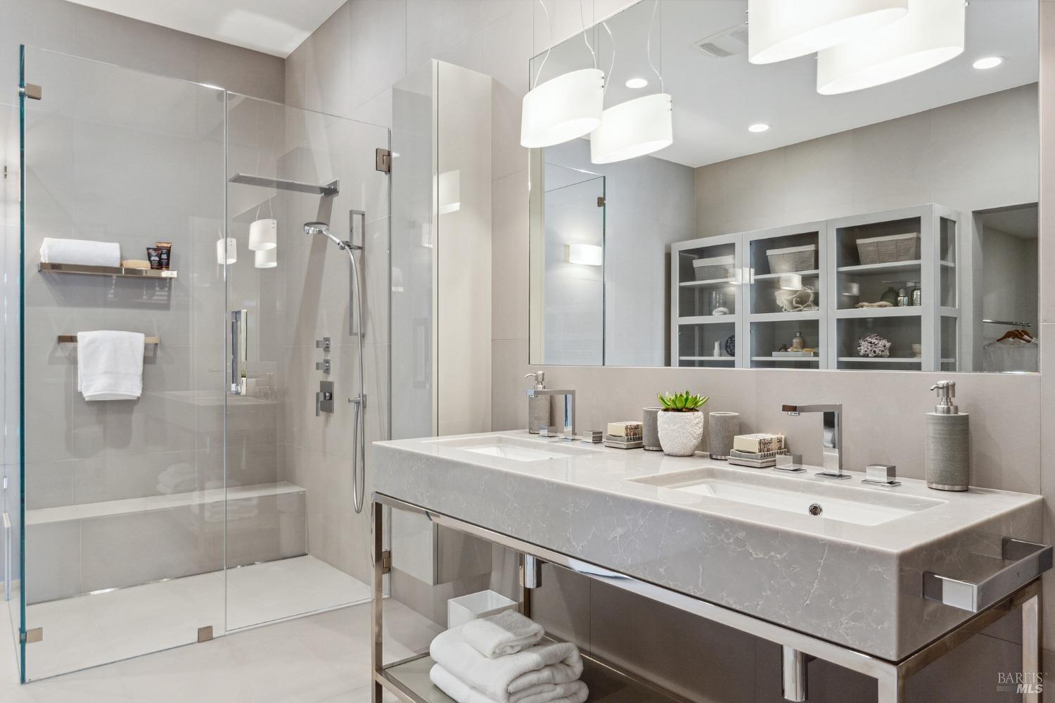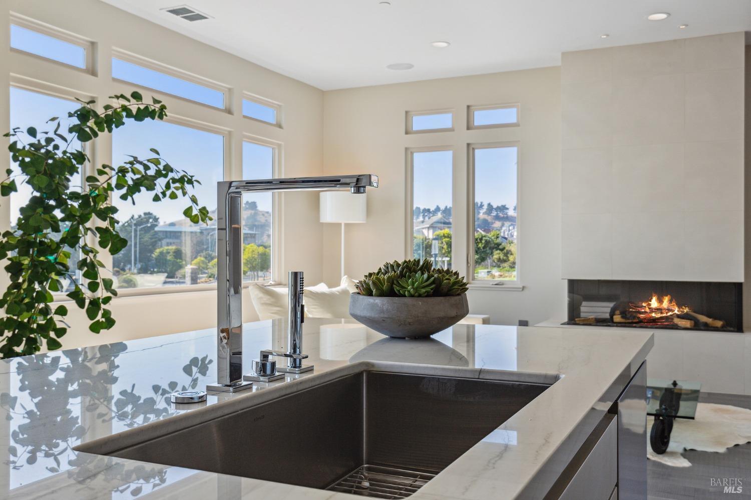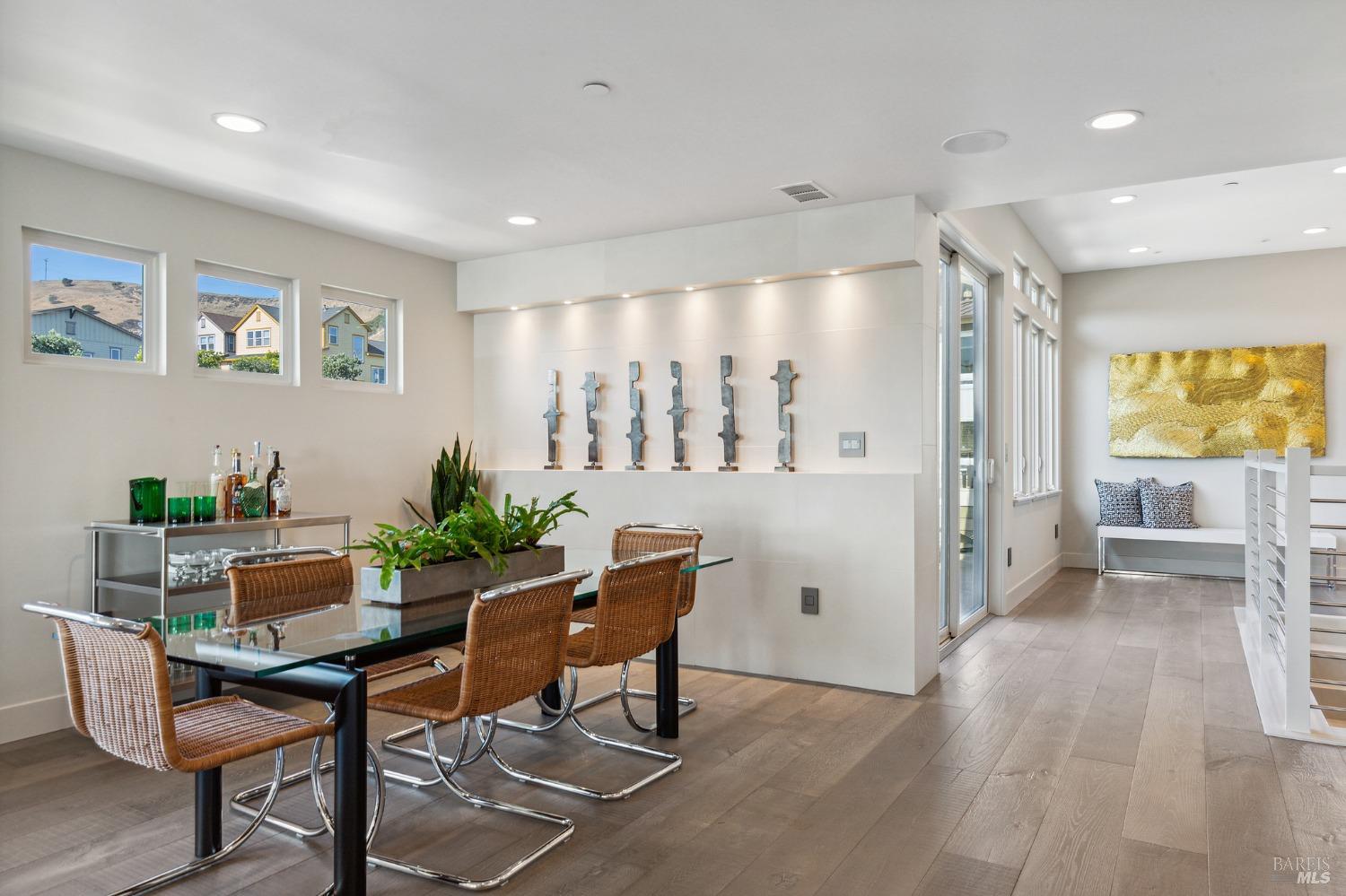 Discover the picturesque village of Point Richmond featuring the finest panoramic views of San Francisco, the Bay Bridge, the Yacht Club, and ever-changing scenery on the Bay in this secluded, serene enclave. The epitome of luxurious waterfront living, this home offers unobstructed front-row views. The upper level, end unit residence, originally the model in 2019, has been completely reimagined showcasing custom built-ins, highest-end appliances and premium designer finishes. With attention to detail evident in every corner, the home exudes a luxurious and modern ambiance. Sunlight bathes the spacious living space. The open floor plan connects the living, dining, and kitchen areas, creating a perfect flow for entertaining and everyday living. The spacious spa-like primary suite off a private hallway also features the water views. Three patios await providing an idyllic setting for relaxation and al fresco dining while enjoying the breathtaking views. The Ferry to the SF Ferry Bldg is ~3 miles away (a 35-minute scenic Ferry ride) and easy access for trips to Marin, Berkeley, the East Bay, or the City. 36 miles of SF Bay Trail pass by the home for recreation. Pt Richmond is a vibrant community w/ restaurants, cafes, parks, a new indoor pickleball center, and much more.