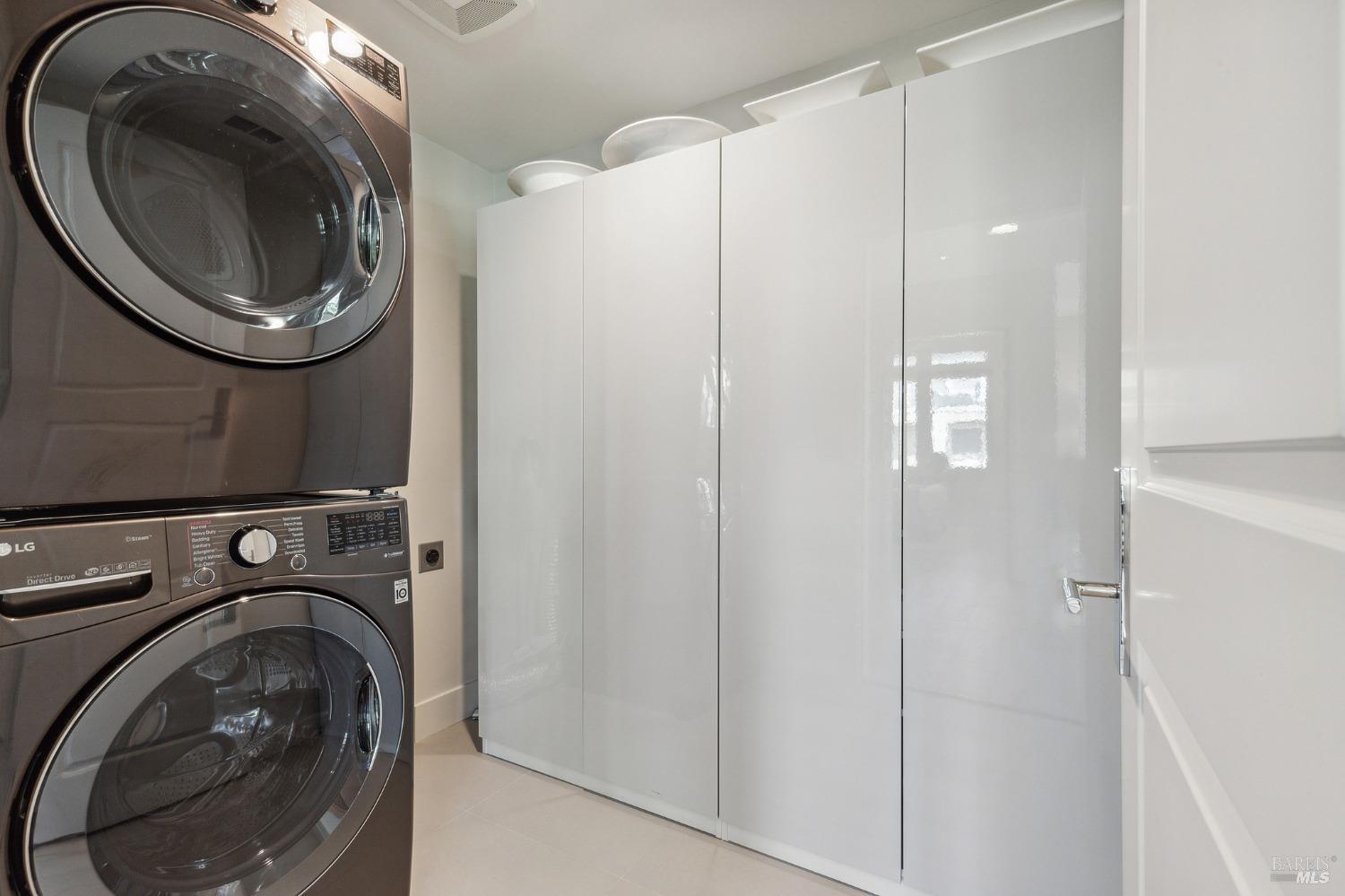 Laundry Room: Cabinets, Washer/Dryer Stacked Included