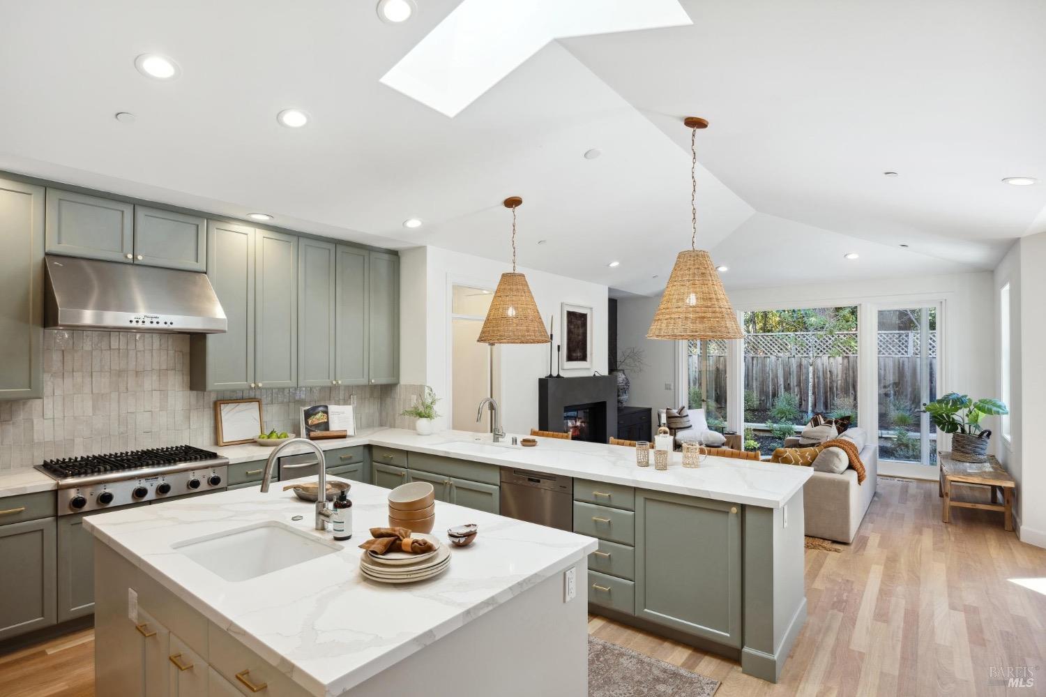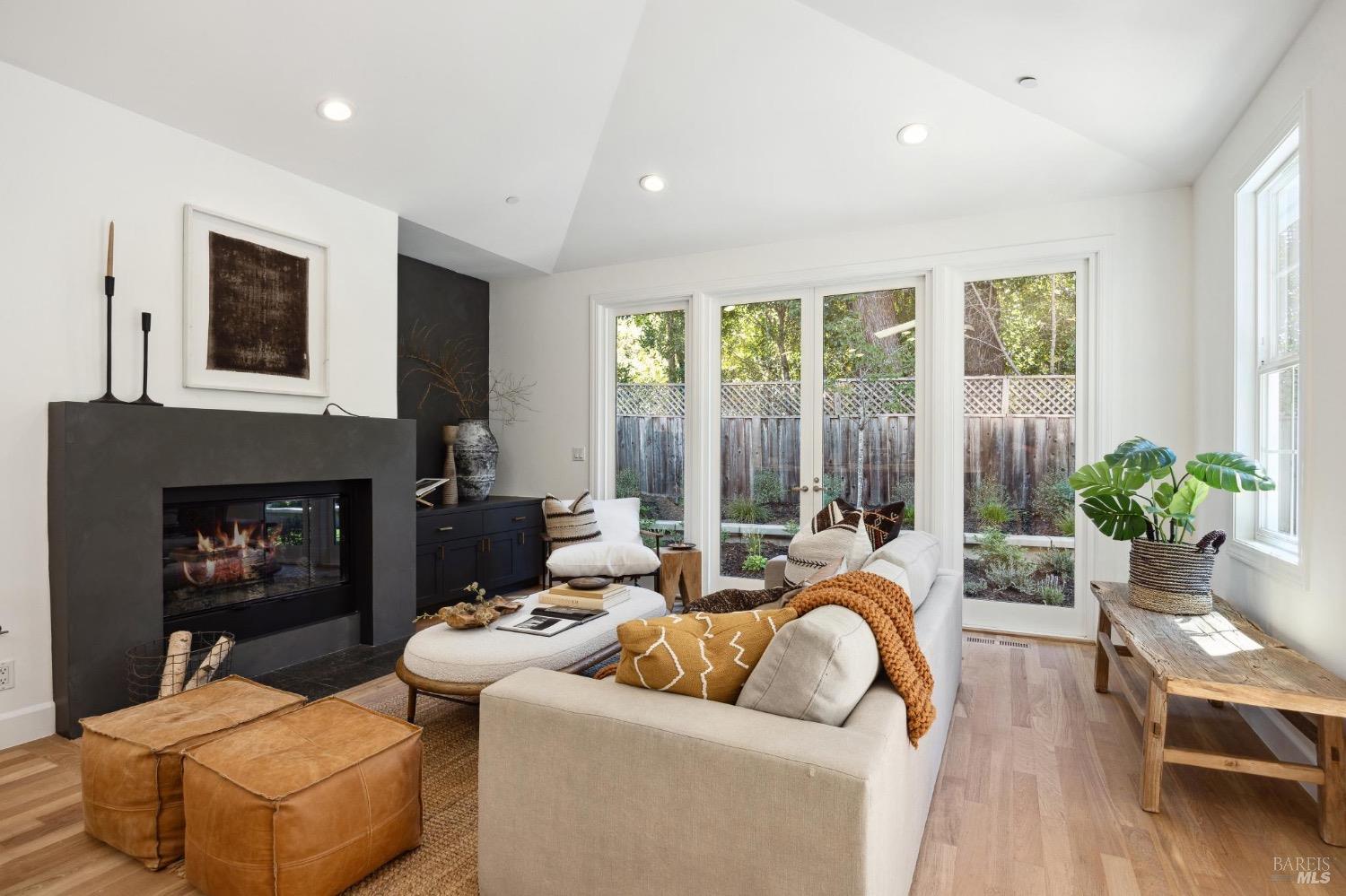 Beautiful one level 3/4 bed, 3.5 bath home, on level lot. Custom built by Hal Weiss. High quality throughout, including bleached Brazilian cherry floors, vaulted ceilings with architecturally designed windows, allowing maximum natural light throughout. Gourmet kitchen with large center island and eating counter, adjoining family room with fireplace & French doors leading to private sunny patio & landscaped fully fenced backyard. Separate living with fireplace and dining room. Primary suite with fireplace & French doors to patio. Two additional en-suite bedrooms, plus a fourth bedroom/office. Attached 2 car garage. This home truly has it all!