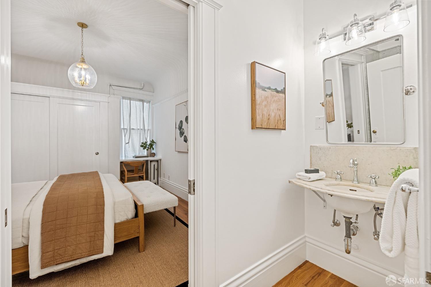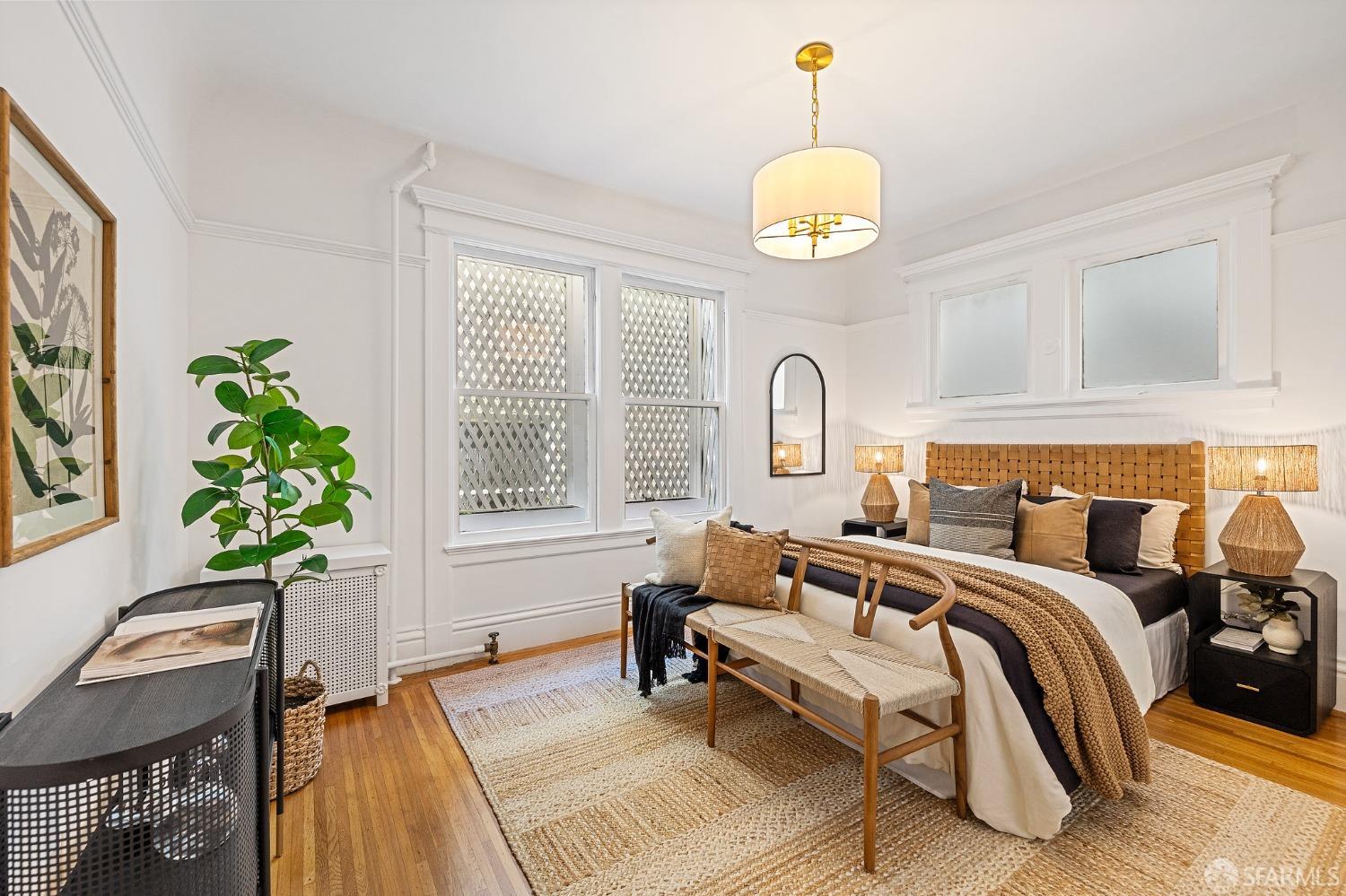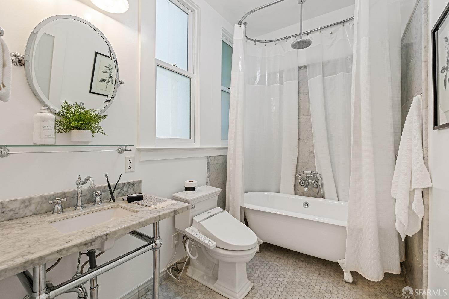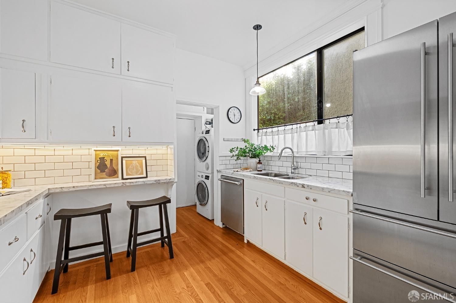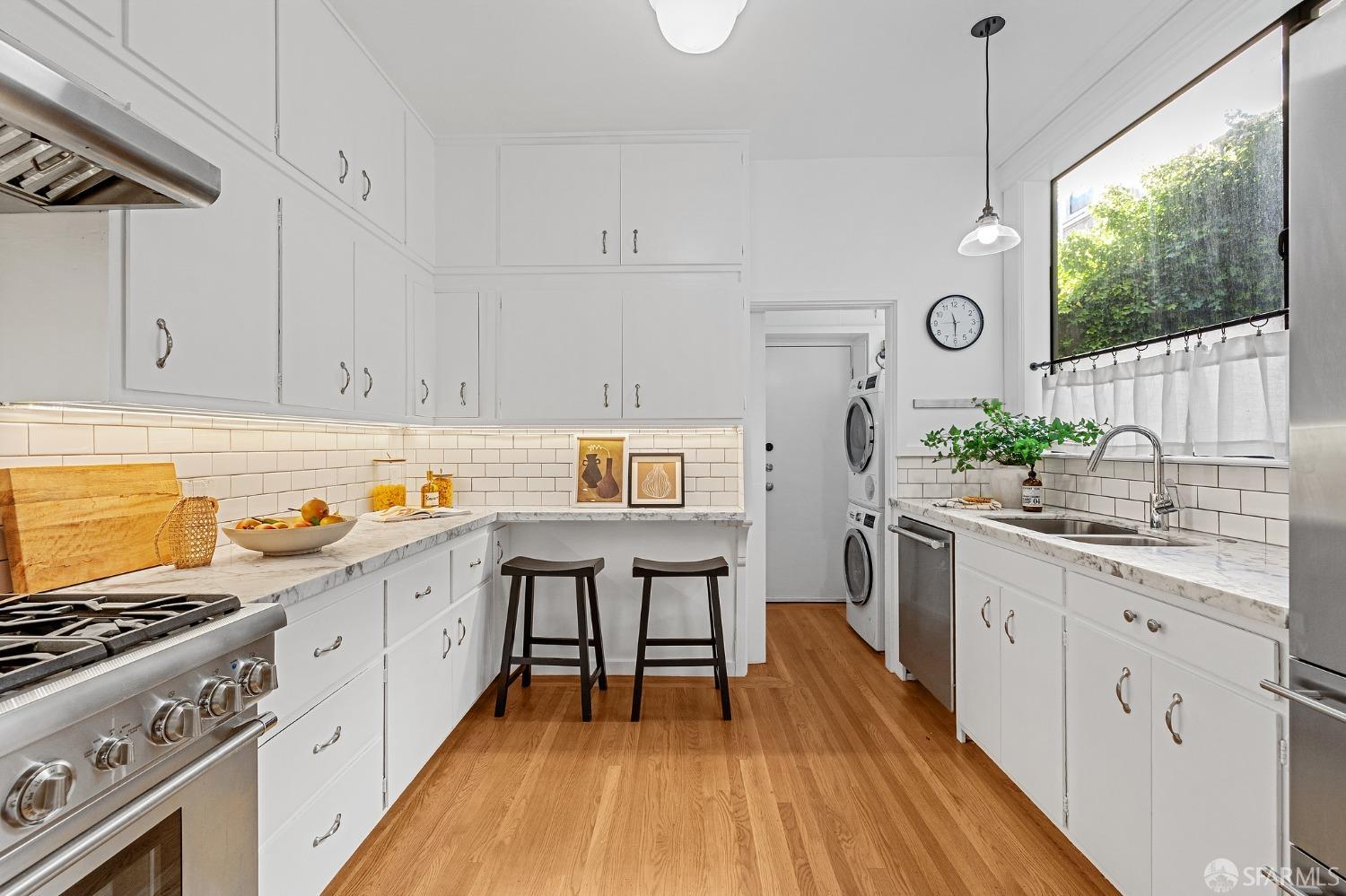 Chic 3 Bed, 3 Bath apartment in prestigious Pacific Heights. This home blends classic charm, period detail, and modern updated luxury. The timeless beauty of Carrera marble updates the kitchen and bathrooms, creating an atmosphere of sophistication and refinement. The high-end appliances including a Thermador range and convenient pot filler create a chef's haven. Indulge in the recently added en suite primary bathroom, a private oasis. Two added partial bathrooms enhance the functionality. Updated fixtures and lighting throughout. The entire residence has been refreshed with quality painting. Step onto rich hardwood floors. Unwind on the private front courtyard. Large dedicated storage room and in-home Bosch washer/dryer. Popular Fillmore Street with all its restaurants, shops, and cafes is 4.5 blocks away; Alto Plaza Park is just 2 blocks! Don't miss the opportunity to make this beautiful residence in the heart of the most sought-after neighborhood your new home.