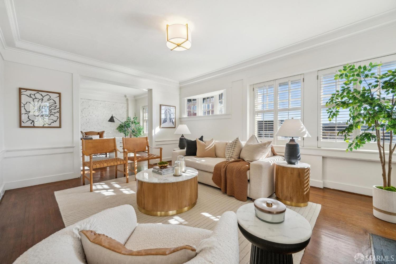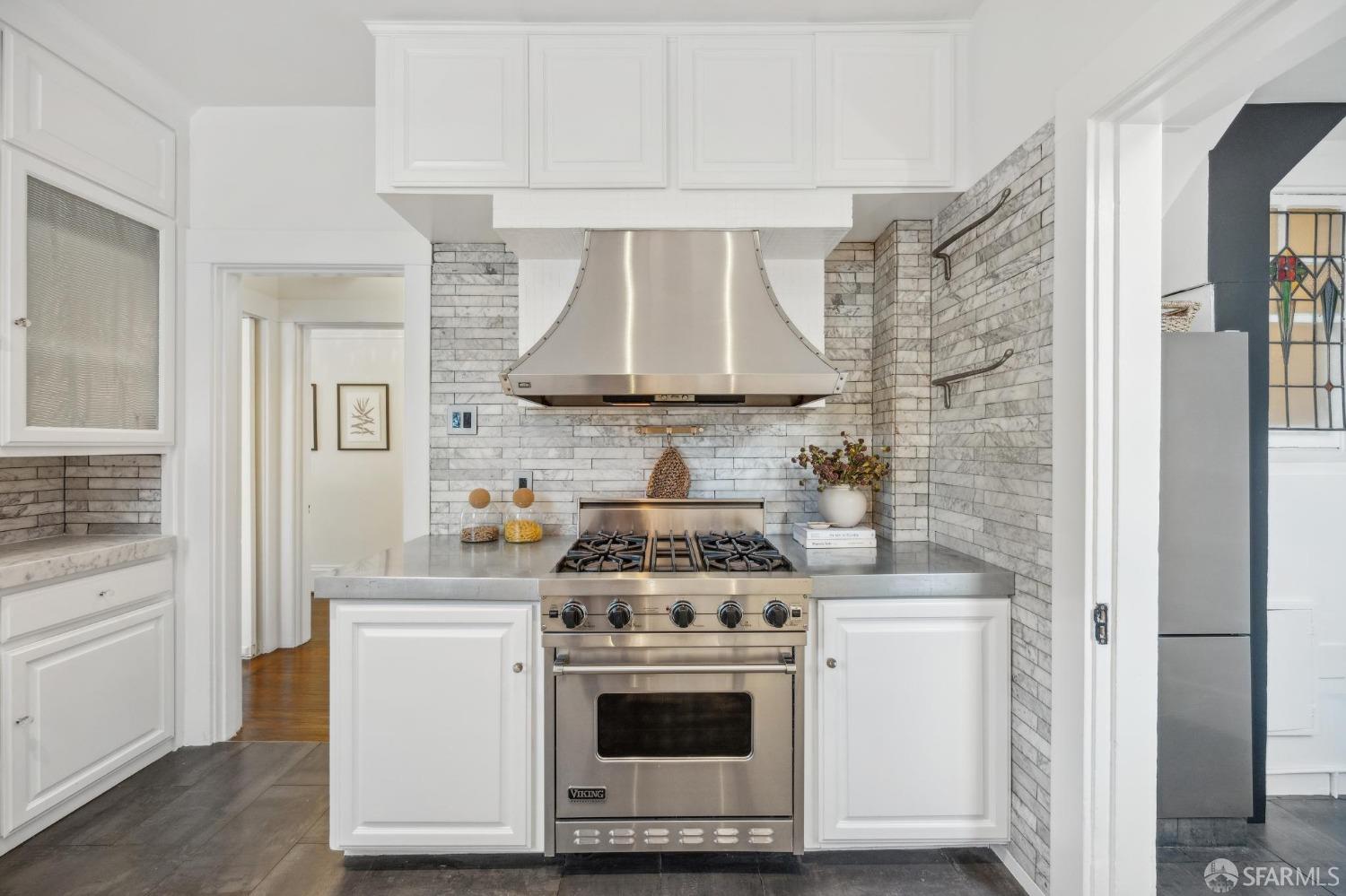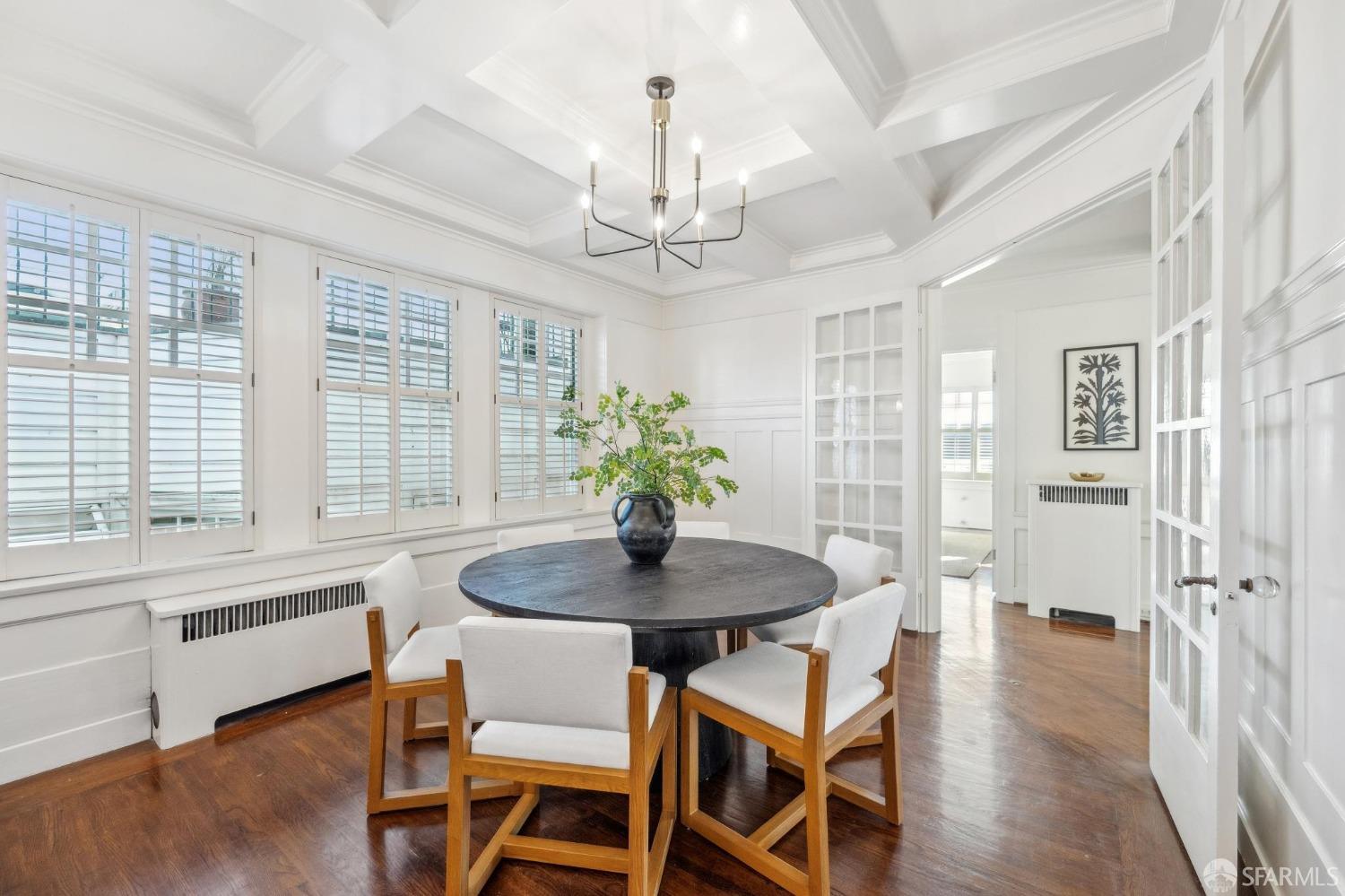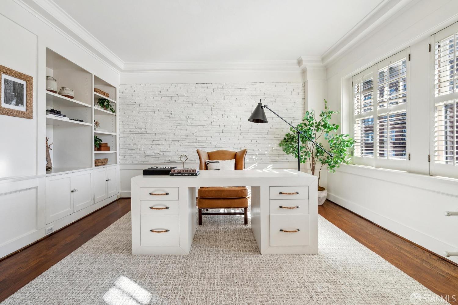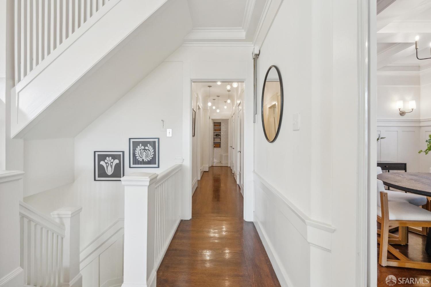 This stunning Craftsmanis located on the border of coveted Presidio and Pacific Heights. Featured in "Travel Home", this exquisite top-floor, two-level flat boasts timeless vintage details and south facing light w/ windows in every room. The spacious entry foyer sets the tone for the refined living experience. The main level includes a formal living room with a charming fireplace. Adjacent is a parlor with a granite-tiled designer wall and built-in cabinets for a separate office or media room. Entertain in style in the formal dining room, featuring elegant coffered ceilings, glass-paned French doors, and elegant wainscoting. The upgraded Chef's kitchen includes high-end appliances Carrera marble and zinc counters, an abundance of cabinets and storage, a butler pantry, custom lights, and a laundry area with bar sink and washer/dryer adding to the functionality and charm of the kitchen. Completing the main level are two spacious bedrooms and a split bath, offering comfort and privacy for family and guests alike. Upstairs is the ensuite primary retreat with a walk-in closet and City outlook. A walk-in attic space provides good storage. Nearby are parks, Sacramento Street, Laurel Village, cafes, restaurants, and shops. Clay is a Slow Street - 97 Walk Score and popular w/cyclists.