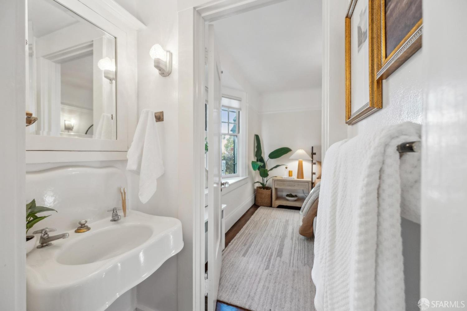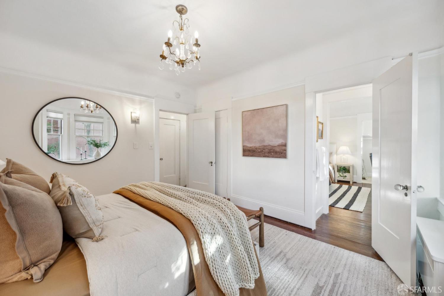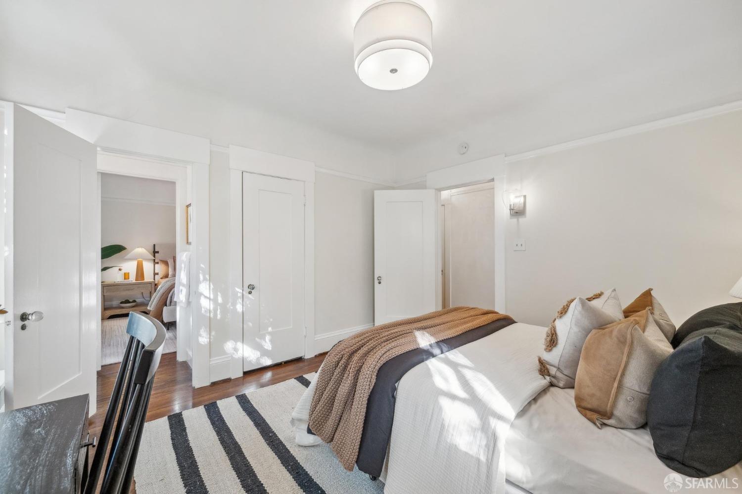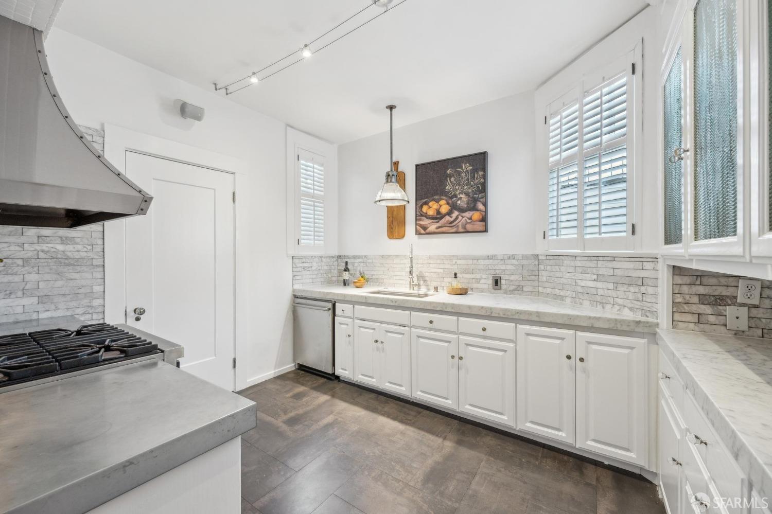 This stunning Craftsmanis located on the border of coveted Presidio and Pacific Heights. Featured in "Travel Home", this exquisite top-floor, two-level flat boasts timeless vintage details and south facing light w/ windows in every room. The spacious entry foyer sets the tone for the refined living experience. The main level includes a formal living room with a charming fireplace. Adjacent is a parlor with a granite-tiled designer wall and built-in cabinets for a separate office or media room. Entertain in style in the formal dining room, featuring elegant coffered ceilings, glass-paned French doors, and elegant wainscoting. The upgraded Chef's kitchen includes high-end appliances Carrera marble and zinc counters, an abundance of cabinets and storage, a butler pantry, custom lights, and a laundry area with bar sink and washer/dryer adding to the functionality and charm of the kitchen. Completing the main level are two spacious bedrooms and a split bath, offering comfort and privacy for family and guests alike. Upstairs is the ensuite primary retreat with a walk-in closet and City outlook. A walk-in attic space provides good storage. Nearby are parks, Sacramento Street, Laurel Village, cafes, restaurants, and shops. Clay is a Slow Street - 97 Walk Score and popular w/cyclists.