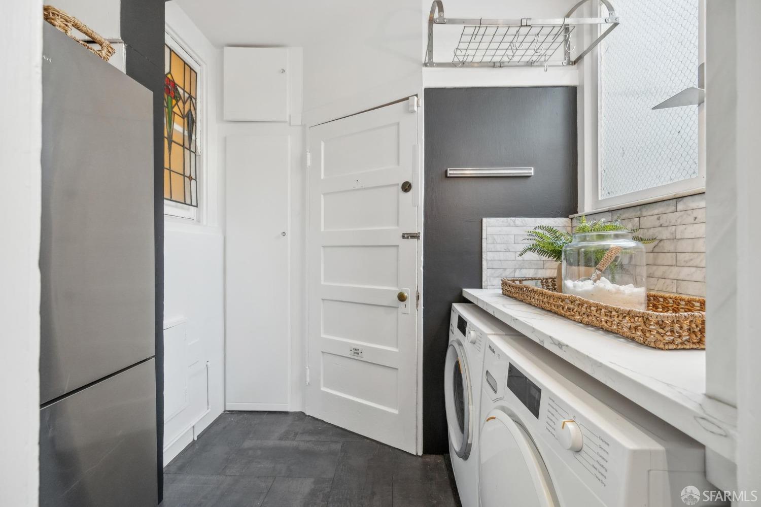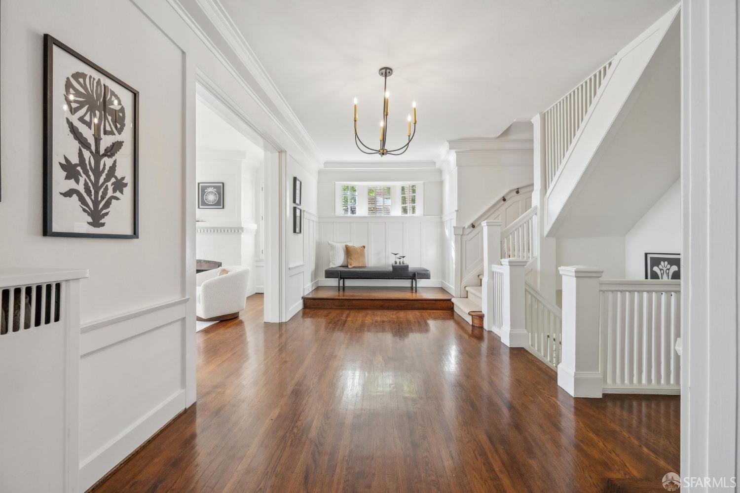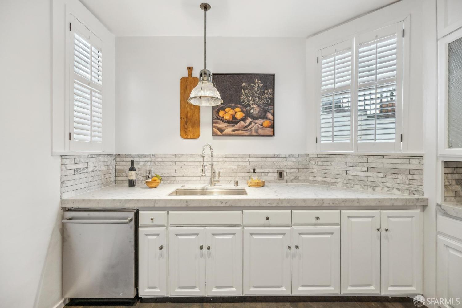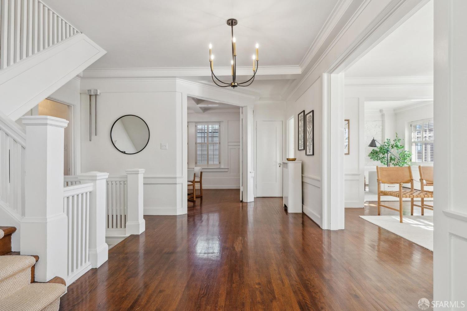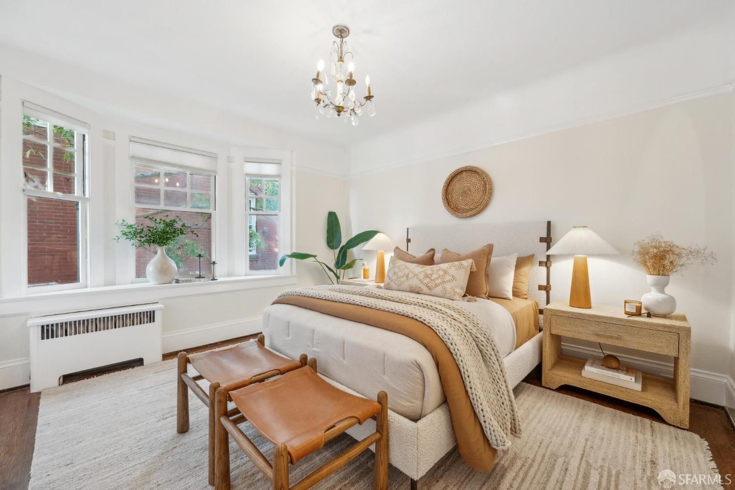 This stunning Craftsmanis located on the border of coveted Presidio and Pacific Heights. Featured in "Travel Home", this exquisite top-floor, two-level flat boasts timeless vintage details and south facing light w/ windows in every room. The spacious entry foyer sets the tone for the refined living experience. The main level includes a formal living room with a charming fireplace. Adjacent is a parlor with a granite-tiled designer wall and built-in cabinets for a separate office or media room. Entertain in style in the formal dining room, featuring elegant coffered ceilings, glass-paned French doors, and elegant wainscoting. The upgraded Chef's kitchen includes high-end appliances Carrera marble and zinc counters, an abundance of cabinets and storage, a butler pantry, custom lights, and a laundry area with bar sink and washer/dryer adding to the functionality and charm of the kitchen. Completing the main level are two spacious bedrooms and a split bath, offering comfort and privacy for family and guests alike. Upstairs is the ensuite primary retreat with a walk-in closet and City outlook. A walk-in attic space provides good storage. Nearby are parks, Sacramento Street, Laurel Village, cafes, restaurants, and shops. Clay is a Slow Street - 97 Walk Score and popular w/cyclists.